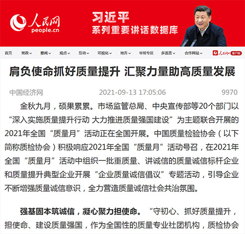 人民網(wǎng):肩負使命抓好質(zhì)量提升 匯聚力量助高質(zhì)量發(fā)展