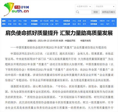 中國青年網(wǎng):肩負使命抓好質(zhì)量提升 匯聚力量助高質(zhì)量發(fā)展——中國質(zhì)量檢驗協(xié)會組織開展2021年全國"質(zhì)量月"企業(yè)質(zhì)量誠信倡議專題活動