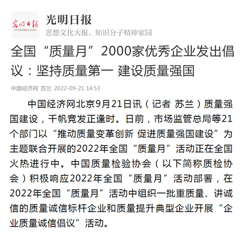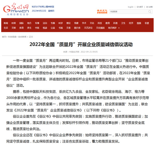 光明網(wǎng):2022年全國(guó)“質(zhì)量月”開展企業(yè)質(zhì)量誠(chéng)信倡議活動(dòng)