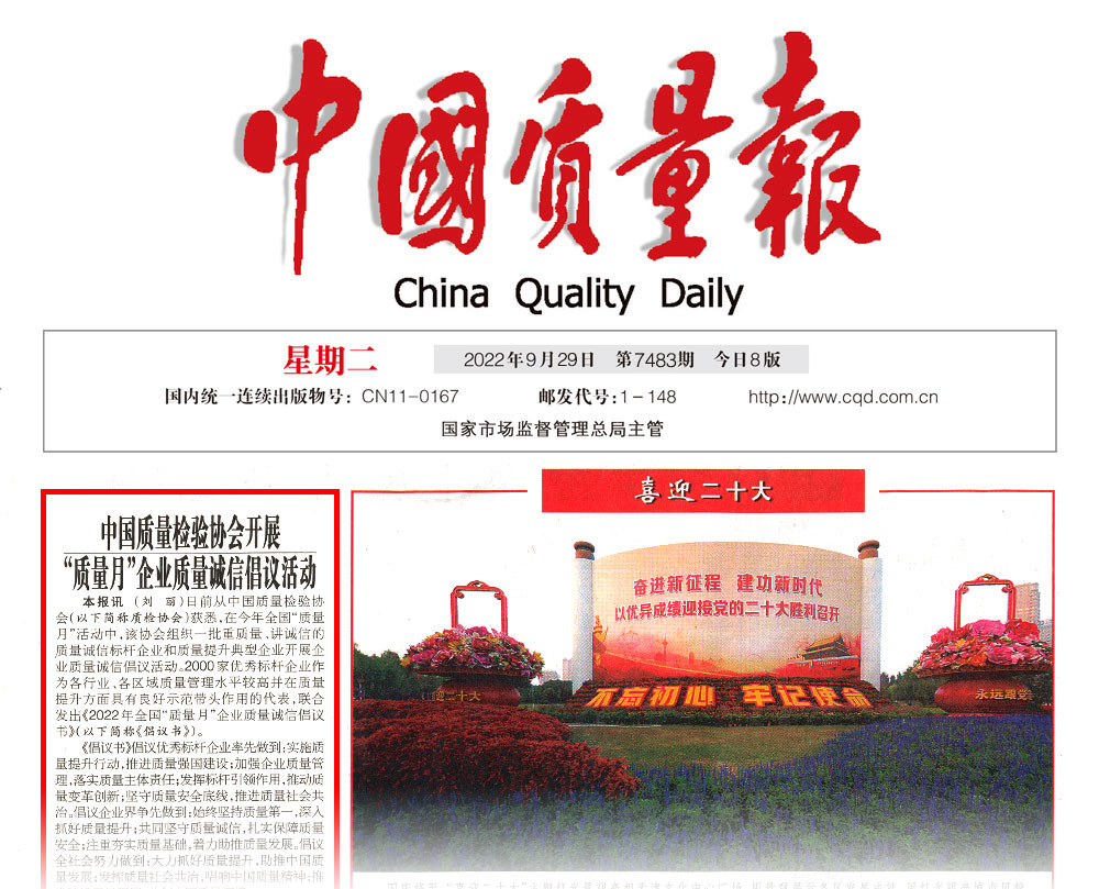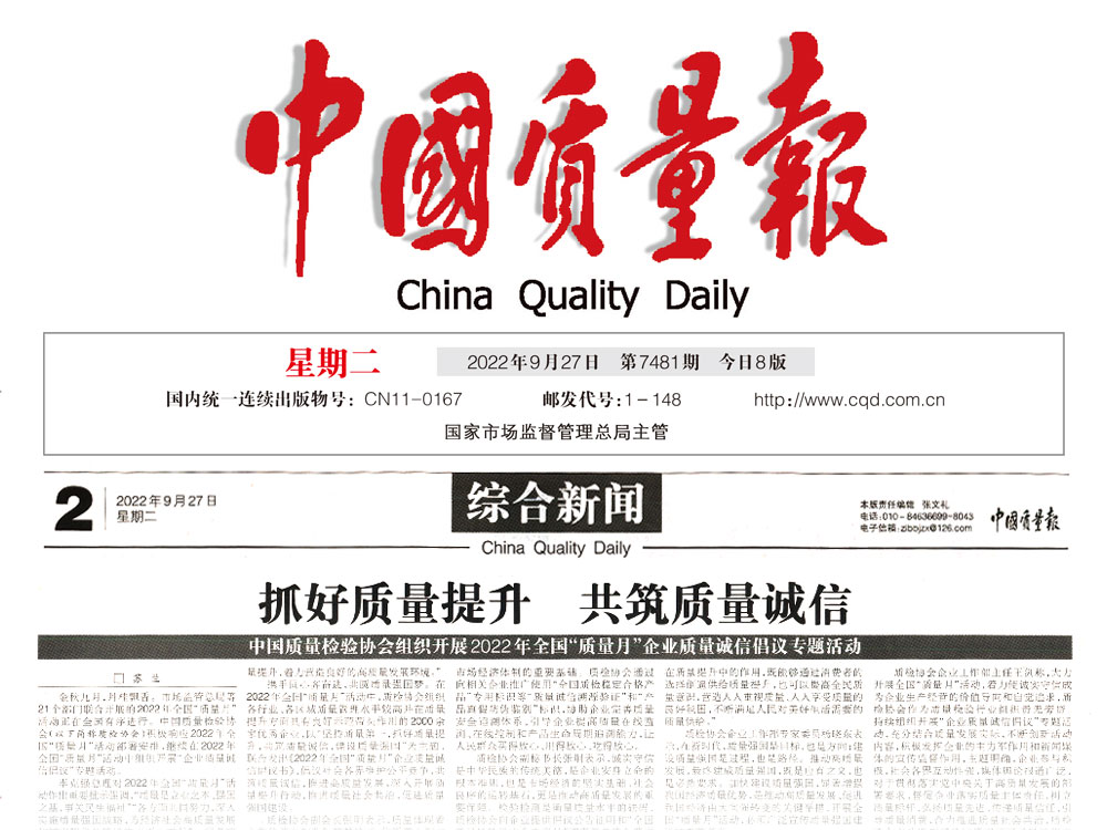 中國(guó)質(zhì)量報(bào):抓好質(zhì)量提升 共筑質(zhì)量誠(chéng)信